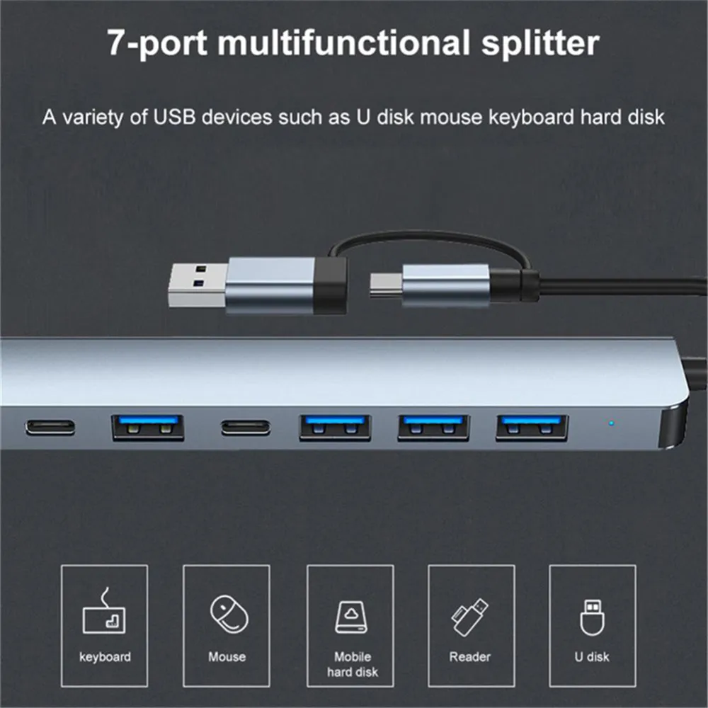 >>>7 Ports USB A Type C 3.0 2.0 Hub Concentrator, 7 Ports: