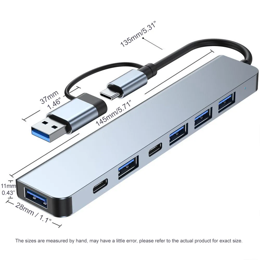 >>>8 Ports USB A Type C 3.0 2.0 Hub Concentrator, 8 Ports: