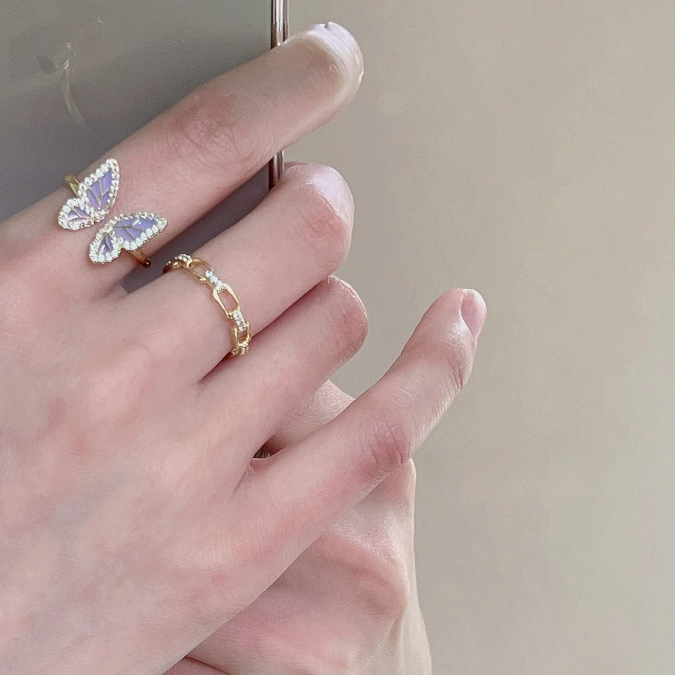 Vintage Gentle Butterfly Rings for Women Adjustable Colorful Drip Glaze